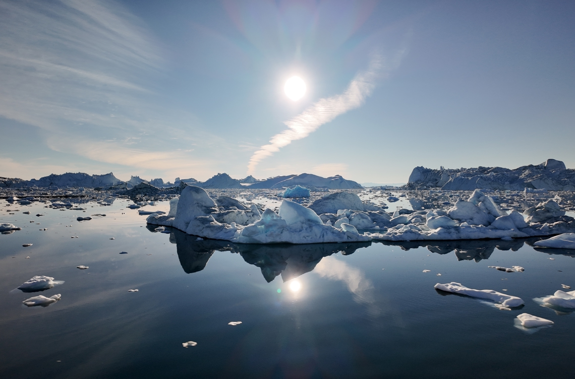 Tågen hænger tungt over øerne og det karakteristiske hjerteformede fjeld, der i går fungerede som smukt bagtæppe for vores vandring til julemandens hytte, er helt forsvundet i skyerne. Til gengæld er fjorden en spejlblank overflade, hvor isbjergene poserer med selvbevidst skønhed helt klar over, at de er blandt det smukkeste i verden. Der venter os uden tvivl en fortryllende sejlads.